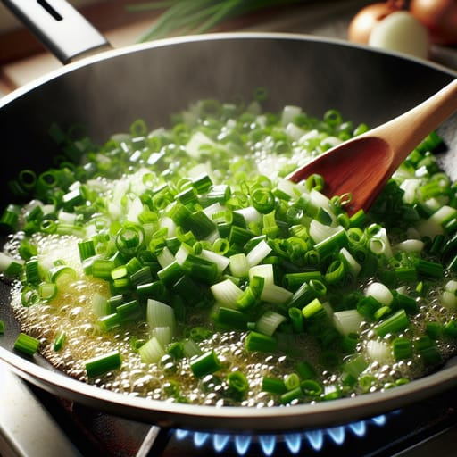 - 팬에 식용유를 두르고 중불에서 다진 대파를 볶아 향을 내줍니다.