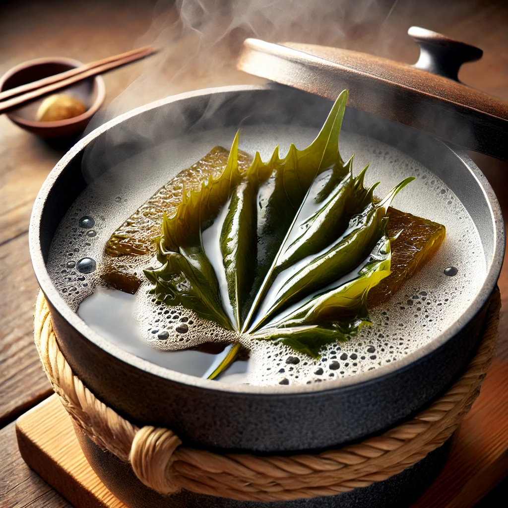 - 냄비에 물 2컵과 다시마를 넣고 중약불에서 끓입니다.