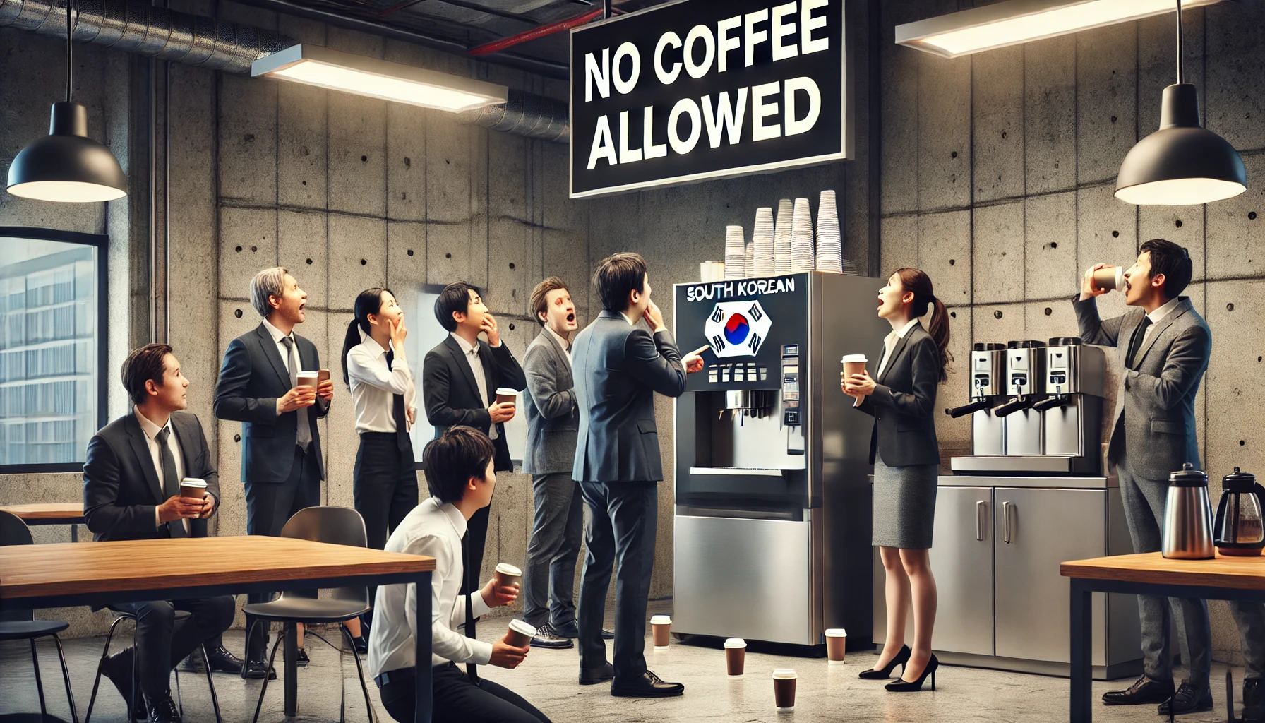 사무실에는 커피 금지령이 떨어졌고, 사람들은 패닉 상태에 빠졌습니다.