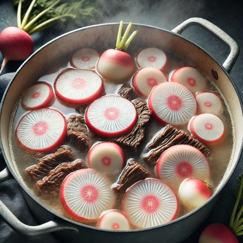 A. 너무 오래 끓이면 무가 흐물거리니, 원하는 식감에 맞춰 조리 시간을 조절하세요.