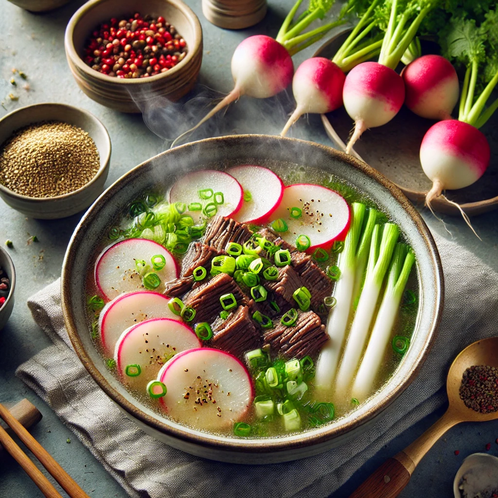 소고기 뭇국은 담백한 국물과 부드러운 무, 고기의 감칠맛이 어우러진 한국식 국물 요리입니다. 간단한 재료로 깊은 맛을 낼 수 있어 누구나 쉽게 만들 수 있으며, 해장이나 몸을 따뜻하게 데워주는 보양식으로도 좋아요.