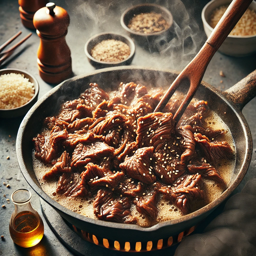- 고기가 익어 표면이 갈색이 되면 다진 마늘을 넣고 향을 더합니다.